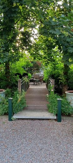 Im Garten findet man weitere kleine Holzterrassen zum verweilen. Wasserzapfsäulen säumen den Weg.
