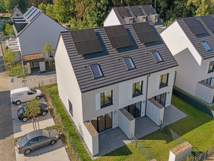Du wohnst modern und energieeffizient im KfN-40-Standard. Das nachhaltige Energiekonzept mit unserem Partner OVE sorgt für niedrige Nebenkosten und und schont die Umwelt. Eine zentrale Wärmepumpe liefert nachhaltige Nahwärme. Der Strom stammt überwiegend aus der eigenen Photovoltaikanlage; überschüssige Energie wird an die einzelnen Häuser verteilt. Das ermöglicht eine besonders effiziente Nutzung der Ressourcen und sorgt für energieeffizientes Wohnen.