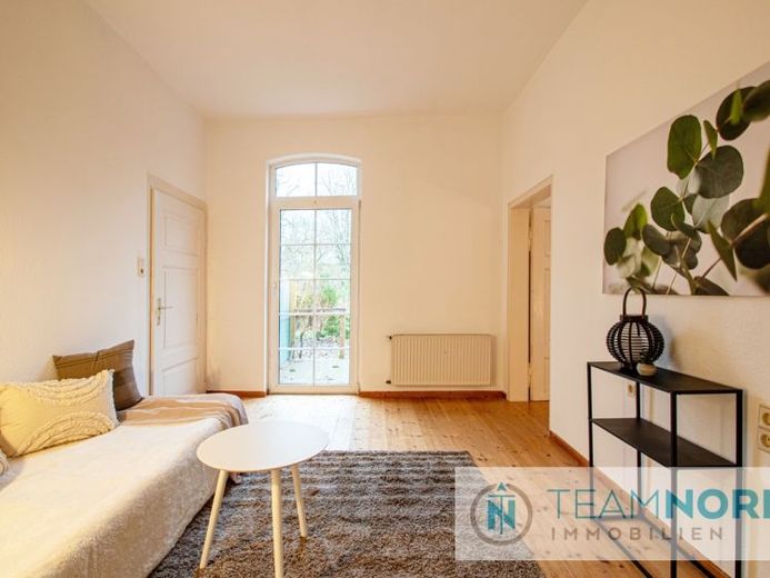 Die linke Haushälfte wurde bereits renoviert und zeigt sich in einem gepflegten Zustand, dennoch sind weitere Modernisierungen erforderlich. Beim Betreten empfängt Sie ein großzügiger Flur, von dem aus Sie direkt in das modernisierte Wannenbad gelangen. Daran anschließend befindet sich ein Durchgangszimmer, das bislang als Küche genutzt wurde, sowie die eigentliche Küche, die wieder entsprechend eingerichtet werden kann. Das Wohnzimmer öffnet sich zum Garten hin und vermittelt ein helles, freundliches Wohngefühl. Von hier aus erreichen Sie zwei weitere Zimmer, die sich ideal als Schlaf- oder Kinderzimmer eignen. Parkettböden verleihen den Räumen Wärme, während Keller und Dachboden zusätzliche Nutz- und Ausbaureserven bereithalten.