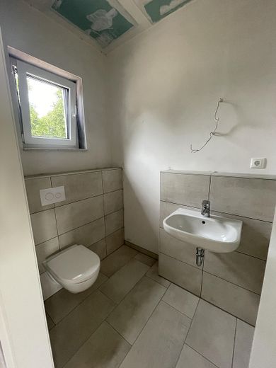 Von der Diele aus gelangen Sie auch in das Gäste-WC sowie den HWR bzw. Haustechnikraum mit Abstellfläche wie zum Beispiel Waschmaschine, Wäschetrockner usw..