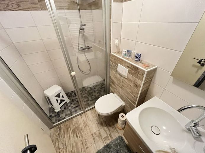 Die Wohnung verfügt über ein geräumiges Wohnzimmer mit Essecke und Loggia, eine separate Küche mit Einbauküche, ein Schlafzimmer und ein Badezimmer mit bodentiefer Dusche sowie einen Abstellraum.