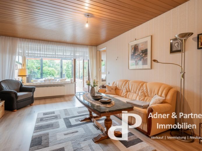 Das Duschbad auf dieser Ebene wurde innerhalb der letzten 15 Jahre modernisiert und verfügt über ein Fenster. Ergänzt wird das Raumangebot im Erdgeschoss durch das Wohnzimmer sowie ein separates Zimmer mit einer Fläche von etwa 10,4 m², das sich wahlweise als Esszimmer oder Arbeitsraum nutzen lässt. Über den Wohnbereich gelangt man auf die ca. 16 m² große Terrasse, die mit einer Überdachung und einer Verglasung zu einem unbeheizten Kaltwintergarten umgestaltet wurde und somit einen geschützten Aufenthaltsbereich vom Frühjahr bis in den Herbst hinein bietet.