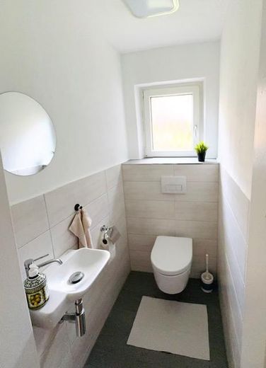 Praktisch abgetrennt, geschmackvoll gefliest.