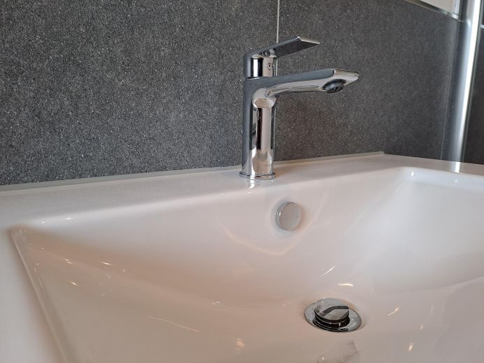 Das hochwertige Tageslichtbad wurde gerade erst modernisiert und mit Dusche, Waschtisch, WC und Waschmaschinenanschluss ausgestattet.