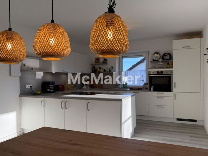 Ein echtes Highlight ist die etwa 15 m² große, überdachte Balkonterrasse zur Südseite: ein privater Rückzugsort mit herrlicher Aussicht ins Grüne. Dank des integrierten Balkonsolarkraftwerks verbindet dieser Bereich Entspannung mit Nachhaltigkeit. Die bodentiefen Fenster holen die Natur förmlich ins Haus und schaffen ein warmes, einladendes Ambiente und sorgen für entspannte Abendstunden im Freien. Die moderne, hochwertige Einbauküche aus dem Jahr 2024 erfüllt höchste Ansprüche und bildet das Herzstück des Küchenbereichs. Ergänzt wird sie durch einen großzügigen, maßgeschneiderten Hauswirtschaftsraum mit weiterer Küchenzeile, Waschmaschine, Trockner und Waschbecken. Dieser Raum lässt sich flexibel gestalten – ob als praktischer Wirtschaftsraum, als zusätzliches Zimmer oder zur Erweiterung des Badezimmers, etwa durch den Einbau einer Badewanne.