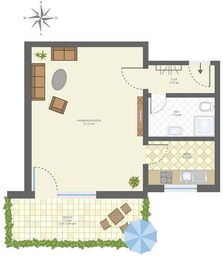 1-Zimmerwohnung inkl. Freisitz in March-Buchheim
