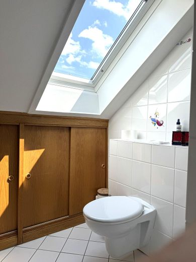 Im Dachgeschoss erwarten Sie drei flexibel nutzbare Zimmer, ob als Schlafzimmer, Kinderzimmer, Büro oder Gästezimmer, hier ist Raum für Ihre individuellen Wohnideen. Zusätzlich gibt es ein Tageslichtbadezimmer mit Dusche.