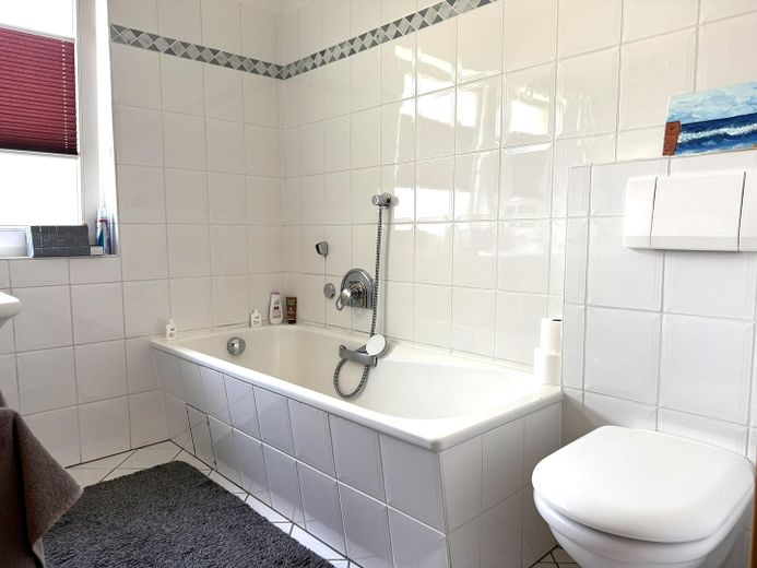 Ein helles und modernes Bad mit Badewanne sowie ein weiteres Zimmer, das als Arbeits- Gäste, oder Schlafzimmer nutzbar ist erwarten Sie ebenfalls im Erdgeschoss.