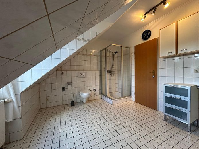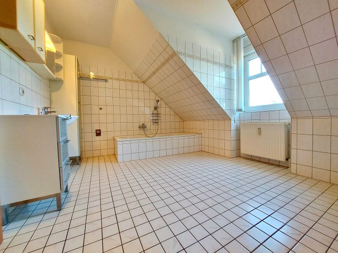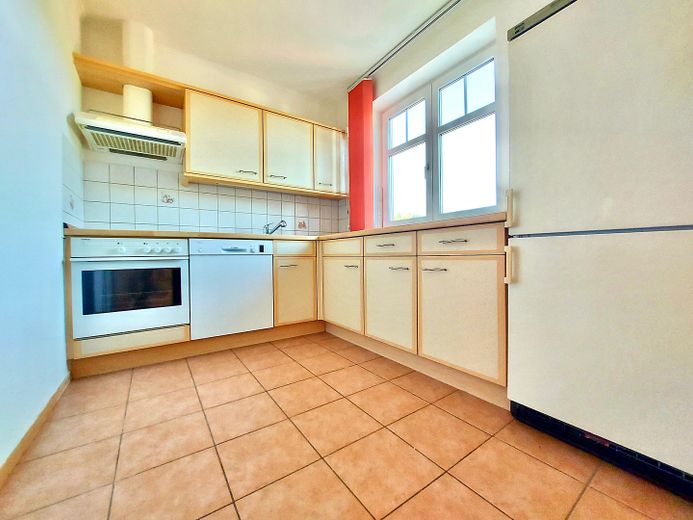 Alle Räume sind hell, großzügig geschnitten und eignen sich besonders für ein Paar oder einen Single. Das Badezimmer ist weiß gefliest und verfügt über eine Echtglas-Dusche, Vollbad und ein Fenster. Die Küche hat ebenfalls einen weißen Fliesenspiegel. Die EBK ist mit Elektrogeräten, Cerankochfeld, Geschirrspüler und Kühl-Gefrier-Kombination ausgestattet und wird zur Nutzung überlassen.