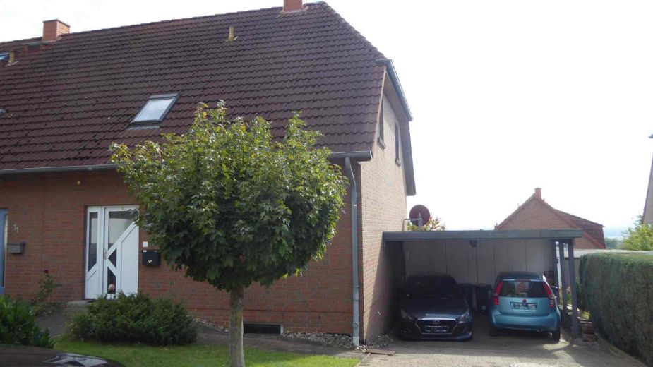 Doppelhaushälfte in verkehrsberuhigter Wohnlage mit Blick zum Kleinen Deister und Jagdschloss. Carport mit zwei Stellplätzen. Im Jahr 2022 komplett saniertes Duschbad,
