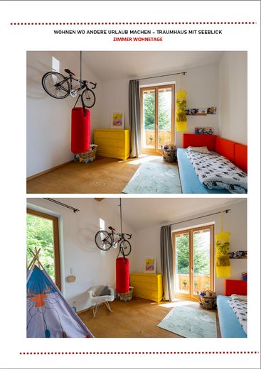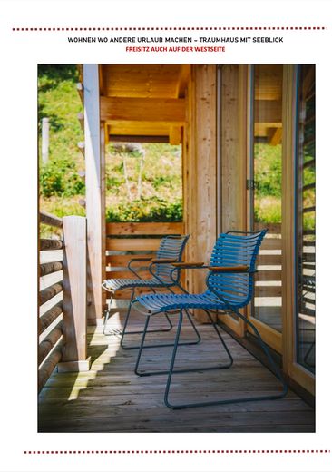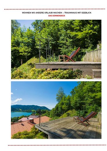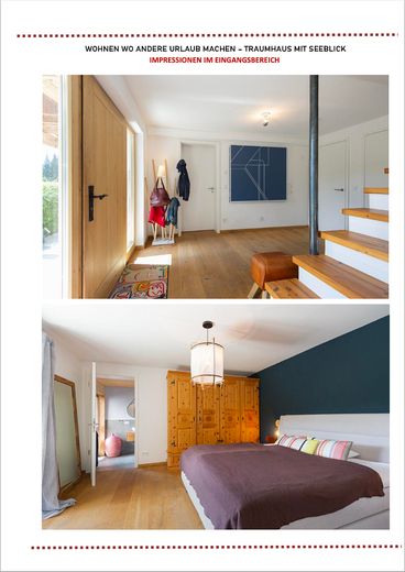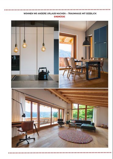Das ursprüngliche Haus aus den 1980er Jahren wurde 2017 vollständig kernsaniert und neugestaltet. Ein Anbau in Vollholzbauweise und integrierter Doppelgarage wurde 2017 neu errichtet. Das Bestandshaus bietet drei Schlafzimmer, zwei Bäder und einen ca. 70 m² großen, offenen Wohn- und Essbereich mit Sichtdachstuhl und wunderschönen Seeblick.