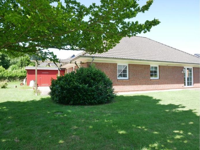 Dieser attraktive Bungalow aus dem Baujahr 1995 wurde in massiver Bauweise mit rotem Egernsunder Klinker errichtet und besticht durch eine durchdachte Raumaufteilung und sonnige Außenbereiche. Sie betreten den ca. 16 m² großen, schön geschnittenen Eingangsbereich. Rechts liegt ein ca. 11 m² großes Zimmer mit Gartenaussicht, ideal als Kinder- oder Arbeitszimmer; daneben ein weiteres Zimmer von ebenfalls ca. 11 m². Auf der linken Seite befindet sich ein ca. 4 m² großes Gäste-WC mit Dusche und Fenster. Gegenüber dem Eingangsbereich liegt die helle, wenig genutzte Küche (ca. 13 m²) mit angrenzendem Hauswirtschaftsraum (HWR, ca. 12 m²) und separatem Außeneingang in den Garten. Vom HWR aus gelangen Sie zudem zum Carport sowie in den Werkstattschuppen – so erreichen Sie an regnerischen Tagen trockenen Fußes Ihr Haus. Weiter im Flur: das Schlafzimmer (ca. 15 m²) und das weiß geflieste Bad (ca. 6 m²) mit Badewanne und Fenster. Das großzügige, helle Wohnzimmer (ca. 26 m²) verfügt über eine Terrassentür zur nach Süd-Osten ausgerichteten Terrasse, auf der Sie morgens im Sonnenschein frühstücken können, mit Blick auf den pflegeleicht angelegten Garten.