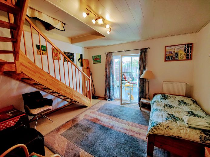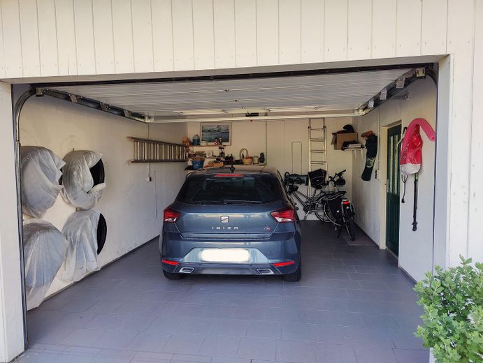 Der Garten ist pflegeleicht angelegt, komplett eingezäunt und kaum einsehbar - nicht nur für Kinder und Hunde ein Paradies. Praktisch und sparsam ist zudem die vorhandene Regenwasserzisterne. In die geräumige Garage passen neben dem Familienauto auch Fahrräder, Reifen und Werkzeug. Zusätzlich gibt es zwei Stellplätze auf dem Grundstück sowie weitere Parkplätze direkt an der Straße vor dem Haus. Hinter der Garage und mit Zugang zum Garten befindet sich eine Werkstatt, in der auch alle Gartengeräte gelagert werden können. Ein Rasenmäherroboter vervollständigt die umfangreiche Ausstattung.