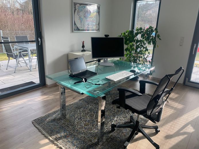 Unter der Treppe ist ebenfalls Platz. Alle Lampen haben wir durch bessere ersetzt. Das Büro, Gäste- o. Jugendzimmer misst 15,51 m² und ist wegen des Doppelfensters schön hell.