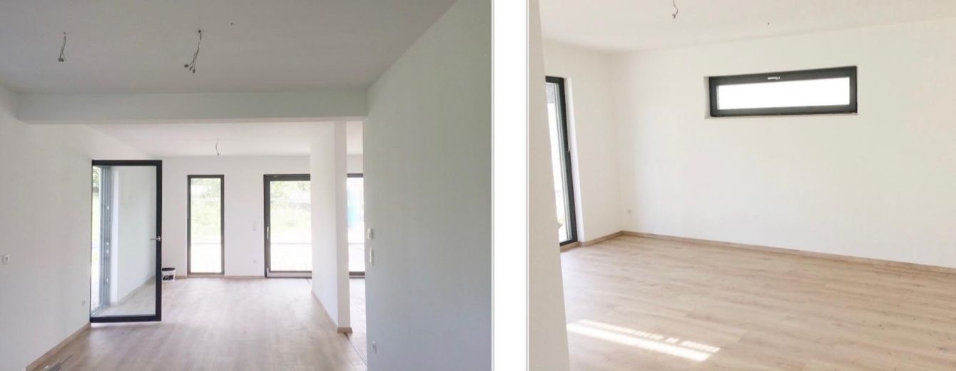 Vorteile: Sie ersparen sich das Warten auf Material, Handwerker o. Genehmigungen sowie Baukosten, die höher ausfallen als erwartet, und ziehen in ein tipptopp ausgestattetes Haus ein. Dennoch ist alles komplett neu. Sie können die Wände streichen u. ihre Schätze einräumen, ohne alle Schränke aufbauen zu müssen.