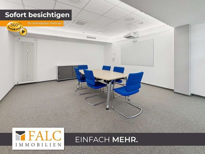 Ein besonderes Highlight ist der separate Besprechungsraum, der durch seine moderne, helle Ausstattung besticht und sich ideal für Kundengespräche oder interne Meetings eignet. Der Sanitärbereich ist zeitgemäß ausgestattet und fügt sich harmonisch in das Gesamtbild ein.