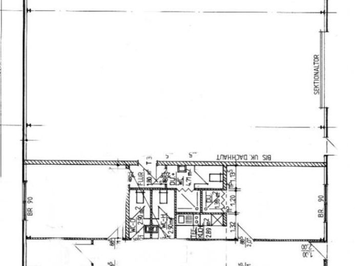 Der Büro-, Verwaltungs- und Sozialbereich umfasst insgesamt ca. 150 m². Enthalten sind vier Büroräume, ein Aufenthaltsraum, Teeküche, Duschen, WC-Anlagen, Flurflächen sowie ein Hausanschlussraum.