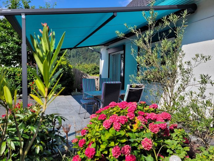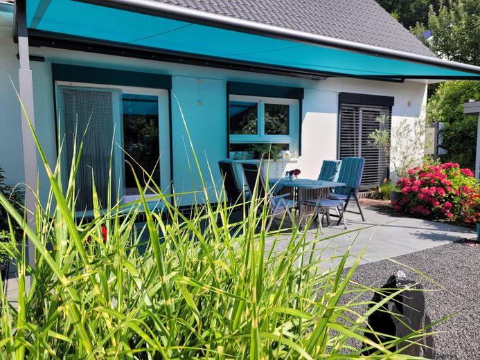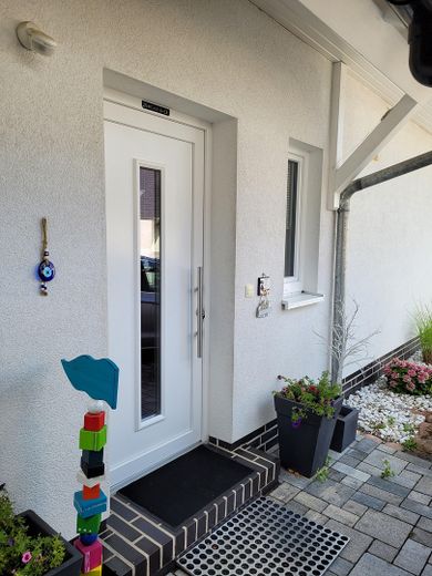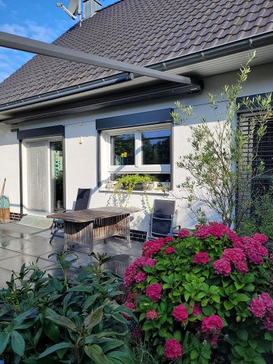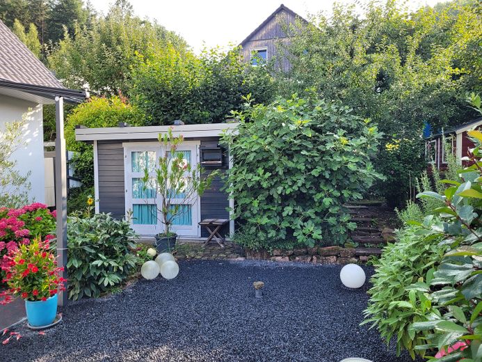 500 qm Grundstück, davon 24 qm mit Granitplatten belegte Terrasse, die mit einer Pergola Markise beschattet werden kann. Angelegter Gartenbereich mit immergrüner Hecke und zwei Gartenhäusern. Außerdem stehen mind. 3 Außenstellplätze zur Verfügung. Glasfaseranschluss, z.B. für Homeoffice.
