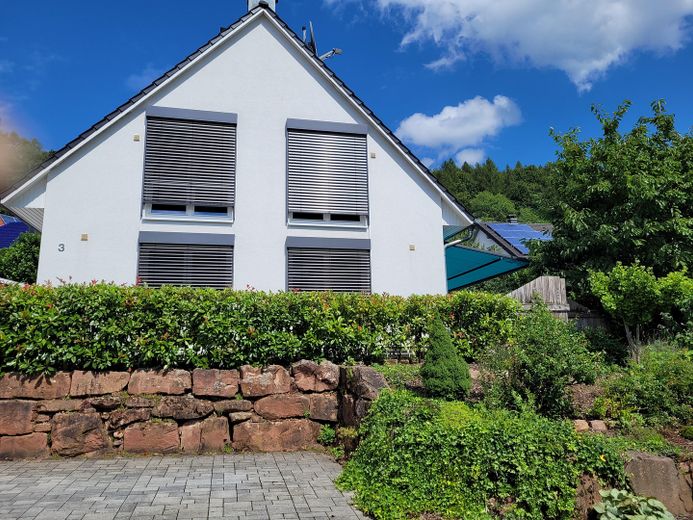 Ansprechendes, modernes, Einfamilienhaus in Massivbauweise (3-schalige Klimaschutzwände) 3-fach verglaste, vorwiegend bodentiefe Kunststofffenster/Türen, Fußbodenheizung (Luft/Wasser und Abluftwärmepumpe), gehobene Innenausstattung.