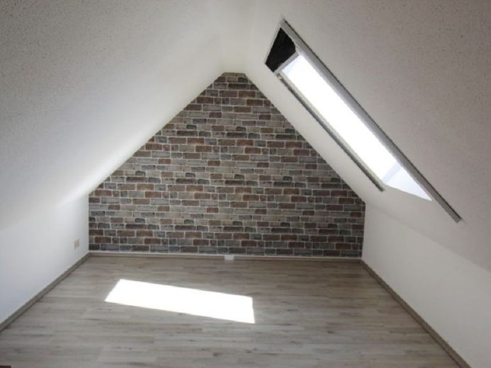 Die helle Maisonettewohnung liegt im Dachgeschoss eines Mehrfamilienhauses in der Nähe des Zentrums der Stadt. Sie eignet sich besonders für Singles oder junge Pärchen. Das Wohnzimmer ermöglicht einen schönen Ausblick auf die Stadt. Die Küche ist zum Teil gefliest und bietet Platz für eine Essecke. In ihr befindet sich auch die Treppe zum Schlafzimmer im Dachspitz. Das lichtdurchflutete Badezimmer verfügt über Wanne und Waschmaschinenanschluss. Im Gebäude befinden sich weitere freie Wohnungen verschiedener Größen.