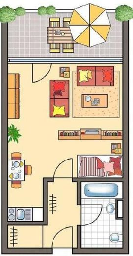 Die Wohnung liegt im 3. Stock eines gepflegten Mehrfamilienhauses unmittelbar am Waldrand mit herrlicher Fernsicht. Es zeichnet sich durch einen funktionellen Grundriss aus und ist untergliedert in den Wohn- und Schlafbereich mit einer angegliederten Kochnische, welche mit einer Küche ausgestattet ist, sowie dem dazugehörenden Badezimmer mit Badewanne, Waschbecken und WC. Des Weiteren ist ein Abstellraum vorhanden. Die große Fensterfront lässt viel Licht in die Wohnung, die dadurch auch sehr hell und freundlich wirkt. Auf dem zugehörigen großen Balkon findet man auch mit seinen Gästen bequem Platz. Zum Appartement gehört außerdem ein Kellerraum. Im Haus befindet sich ein Personenaufzug, ein Münzwasch- und Trockenautomat, ein Raum für Sport und Spiel und ein Fahrradkeller.