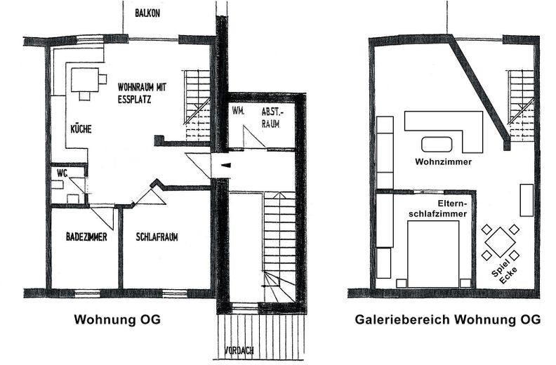 Vermietet wird eine helle, geräumige Wohnung im 1. OG mit Galeriebereich, großen überdachten Balkon und Bad mit Badewanne.
