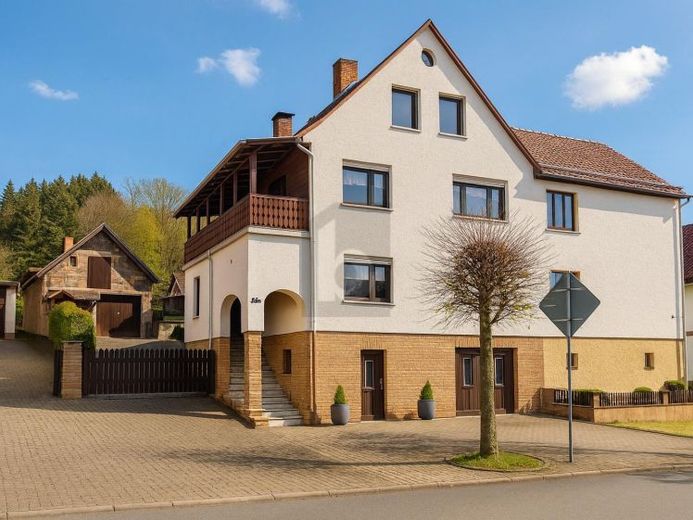 Dieses charmante Zweifamilienhaus in Trusetal bietet mit seinen 6 Zimmern und einer Wohnfläche von 190 m² genügend Platz für eine Familie. Der Balkon und der Kamin sorgen für Gemütlichkeit und die 3 Garagenstellplätze bieten genügend Platz für Fahrzeuge. Die großen, lichtdurchfluteten Räume und der geräumige Dachboden bieten viel Freiraum zum Entfalten. Die ruhige Lage rundet das Gesamtpaket ab und macht dieses Haus zu einem idealen Ort für Familien, die Wert auf ein harmonisches Zuhause legen.<br><br>Dieses BETTERHOMES-Angebot zeichnet sich durch folgende Vorteile aus:<br>- 190m² Wohnfläche mit tollem Grundriss<br />
