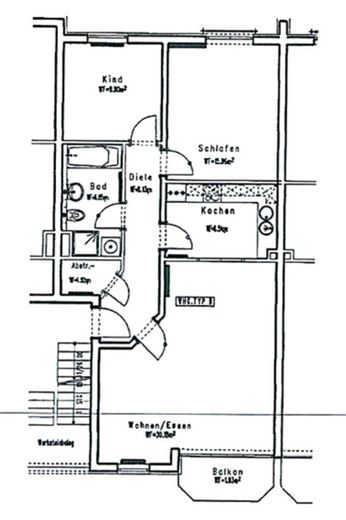 Wohnung mit Balkon und Kellerabteil. Bad mit Dusche und Badewanne.