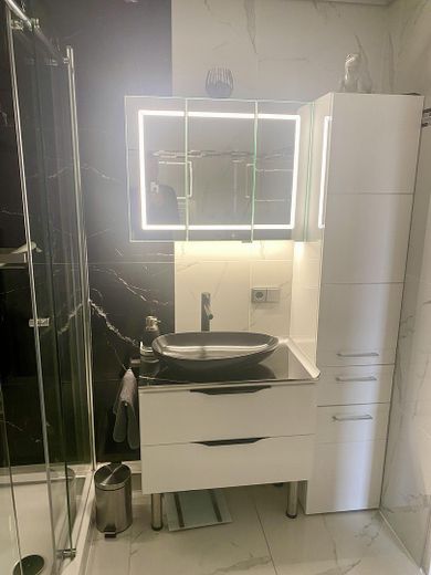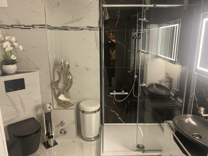 Im 3.OG befindet sich das wärmegedämmte moderne hochwertige 2023 komplett renovierte Badezimmer mit einer begehbaren 120x80 cm Edelstahl/Glasdusche, modernem schwarz / weißen Keramiken,WM-Anschluss. Ein doppeltes Alu-LED Band lässt das Bad in einem besonderen Licht erstrahlen. Das Schlafzimmer ist gross und gemütlich mit seinem warmen Massiv-Bambus Fußboden. Auch auf einen optimal eingerichteten Vorratsraum müssen sie nicht verzichten.