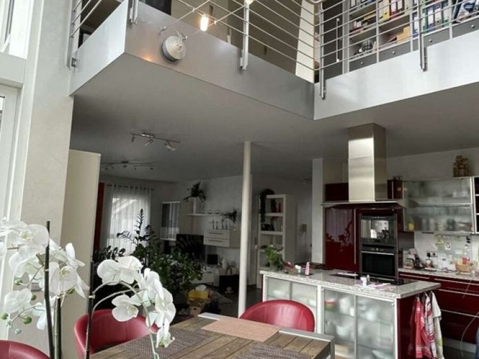 Dieses exklusive Architektenhaus begeistert mit seiner offenen Bauweise, viel Tageslicht und einem außergewöhnlichen Wohngefühl. Schon beim Betreten der großzügigen Empfangsdiele mit eleganter Treppengalerie wird klar: Hier erwartet Sie etwas ganz Besonderes.