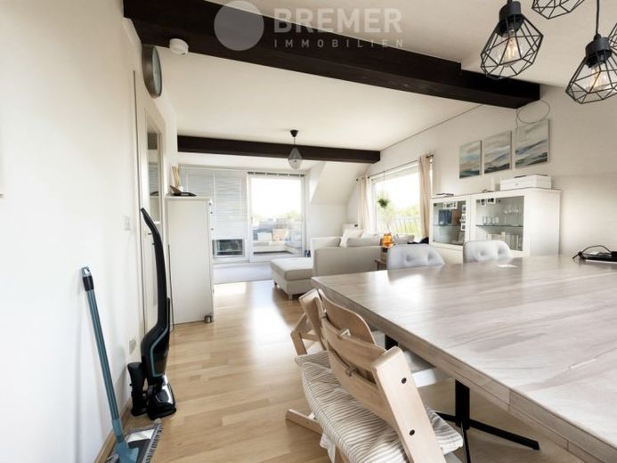 Verkauft wird eine ca. 75 m² große Dachgeschosswohnung mit sonniger Dachterrasse in Westausrichtung und einem Carport, in einem gepflegten Mehrfamilienhaus mit insgesamt sechs Wohneinheiten. Das Gebäude wurde 1972 in massiver Bauweise errichtet und ist vollständig unterkellert, das Dachgeschoss selbst wurde 1990 -91 zu Wohnraum ausgebaut. Die Wohnung überzeugt durch ihre besondere Helligkeit und das großzügige Wohnzimmer mit offenen Balken, die dem Raum einen charmanten und wohnlichen Charakter verleihen.