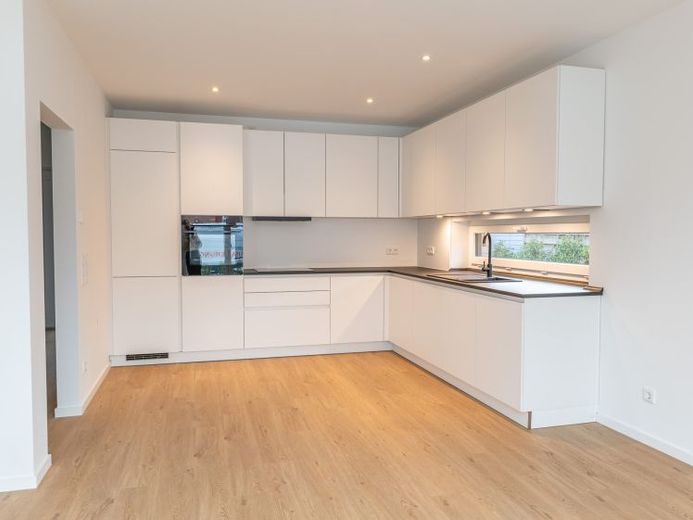Der lichtdurchflutete Wohnbereich mit bodentiefen Fensterflächen führt direkt auf die Terrasse und in den pflegeleichten Garten. Im gesamten Haus sorgt eine Fußbodenheizung für angenehme Wärme – kalte Füße gehören der Vergangenheit an. Der hochwertige Vinylboden in Holzoptik kommt vor allem im Wohnzimmer perfekt zur Geltung.