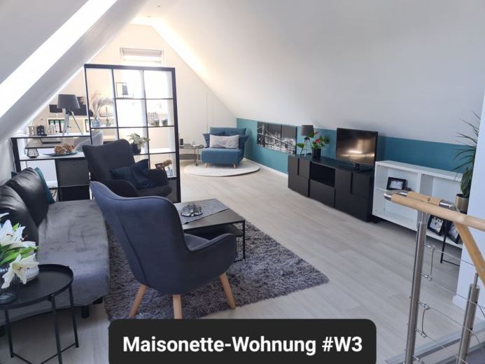 Das Schlafzimmer #1 befindet sich gleich im 1 OG und der Wohnbereich sowie das Schlafzimmer #2 ist über eine eigene Treppe im DG zugänglich. Das wunderschöne große Wohnzimmer erstreckt sich über mehr als 8 Meter und hat eine tolle Raumhöhe. Beide Schlafzimmer sind nordostausgerichtet. Die Küche ist mit einer modernen EBK ausgestattet und verfügt über einen Kühlschrank (ohne Gefrierschrank) und Geschirrspüler. Das Bad hat eine moderne, bodentiefe Dusche, eine Handtuchheizung sowie einen Waschmaschinenanschluss.
