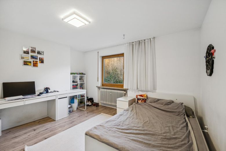 Drei gut geschnittene Zimmer bieten viel Platz für Kinder, Gäste oder Homeoffice. Außerdem befindet sich hier ein modernes Badezimmer.