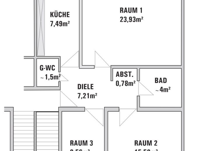 Gut aufgeteilte Eigentumswohnung in kleiner Wohneinheit mit nur 4 Wohnungen.