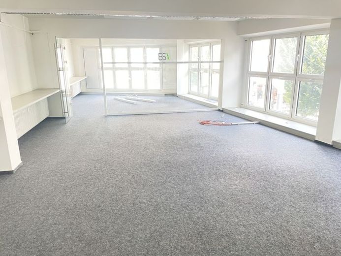 Die Gewerbefläche liegt im Zentrum von Merzig im 1. Obergeschoss mit separatem Eingang und großer Glasfront. Es handelt sich um einen großen, lichtdurchfluteten Gewerbefläche der in 3 Büros aufgeteilt ist.