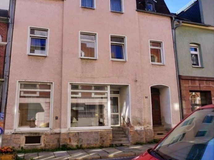 Interessantes Zweifamilien-/Reihenhaus in stadtzentrumsnaher Wohnlage. In dem Mehrfamilienhaus befinden sich im Erdgeschoss ein ehemaliges Ladengeschäft. Im 1. Obergeschoss eine größere Zweiraumwohnung mit ca. 62 m² und im Dachgeschoss Räumlichkeiten mit einer Wohn-/Nutzfläche von ca. 52 m². Die Wohnungen sind frei, die Wohnung im 1. Obergeschoss wurde von der Eigentümerin bis zuletzt selbst genutzt. Die Wohnung wurde saniert, Badezimmer mit integriertem WC, Dusche, neue Fenster. Die Wohnung im Dachgeschoss bedarf noch einer vollständigen Sanierung. Für die Wohnungen und den Laden existiert eine neue Gaszentralheizung im Erdgeschoss. Das Gebäude ist voll unterkellert. Das Anwesen ist voll erschlossen einschließlich Anbindung an die zentrale Kanalisation. Investitionsbedarf bei der Modernisierung der Wohnungen im Dachgeschoss und ggf. Fassade. Das rückseitig anschließende Grünfläche kann von den zukünftigen Eigentümern oder Mietern genutzt und gestaltet werden.<BR />Mit Modernisierungsmaßnahmen wurde begonnen, Elektrik, Heizung, Fenster, Badeinbau, Innenputz und Sanitärleitungen