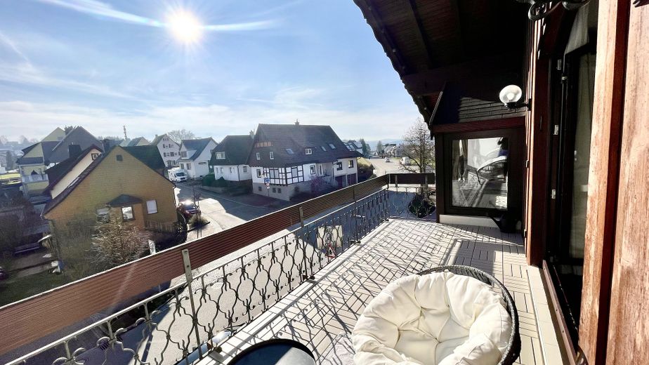 Der Zugang zum Balkon befindet sich ebenfalls im Wohnbereich, auch dieser ist großzügig geschnitten & lädt zum verweilen ein. Hier geht morgens die Sonne auf & abends die Sonne unter. Im Sommer lassen sich vom Balkon aus die schönsten Sonnenuntergänge bestaunen.