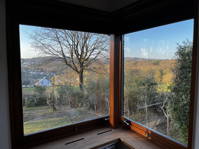 Das Haus verbindet zeitlose Architektur mit modernem Wohnkomfort. Großzügige Panoramafenster schaffen fließende Übergänge zwischen innen und außen und öffnen den Blick über das Bergische Land sowie in den Garten. Die Immobile bietet ein hohes Potenzial zur Entwicklung Ihrer individuellen Wohnträume.