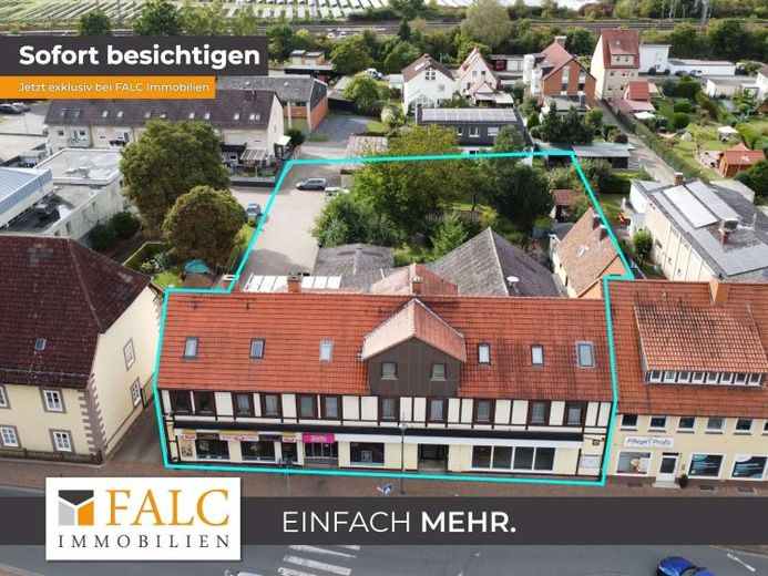 Angeboten wird ein vielseitig nutzbares Wohn- und Geschäftshaus auf einem großzügigen Bauland Grundstück von rund 2.662 m² bestehend aus 3 Flurstücken. Die Immobilie befindet sich in einer stark frequentierten und zugleich etablierten Lage von Nörten-Hardenberg, wodurch sich sowohl die Wohn- als auch die Gewerbeflächen ideal vermarkten lassen. Insgesamt verfügt das Gebäude über eine Wohnfläche von etwa 510 m² sowie über rund 540 m² Gewerbefläche. Ergänzt wird das Angebot durch ein weiteres kleines Wohnhaus mit einer Wohnfläche von etwa 80 m², welches sich auf dem angrenzenden Grundstück befindet und derzeit vermietet ist.