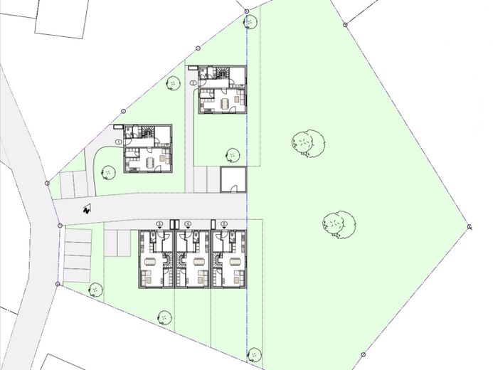 Eine erste Konzeptplanung zeigt bereits, wie das Ensemble aussehen könnte – mit modernen Grundrissen, großzügigen Wohnbereichen und sonnigen Gärten.