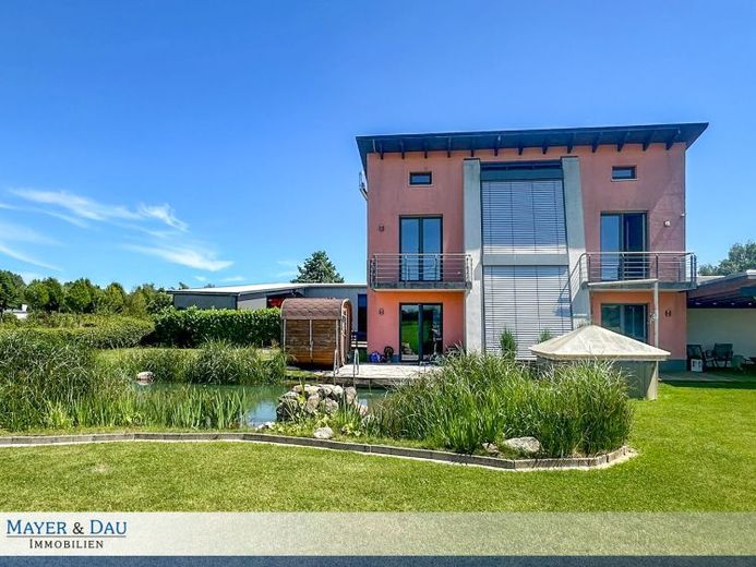 Ein besonderes Highlight des Außenbereichs ist der Ausblick und der schön angelegte Schwimmteich, der zum Entspannen und Verweilen einlädt.