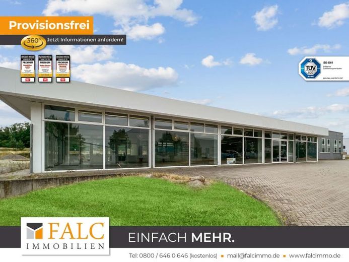 Das Gebäude überzeugt vor allem durch den etwa 408 Quadratmeter großen und lichtdurchfluteten Showroom. Dieser ist mit einem Empfangs- und Wartebereich für Ihre Kundinnen und Kunden sowie mit fünf Büroräumen ausgestattet. Dank der großen Schaufensterfronten ist der Verkaufsraum sowohl vom Parkplatz als auch von der vorbeiführenden Straße bestens einsehbar – ideale Voraussetzungen also, um Ihre Fahrzeuge wirkungsvoll zu präsentieren.