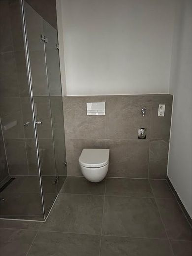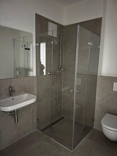 - Stilvolles Badezimmer mit moderner Sanitärausstattung und Duschabtrennungen
