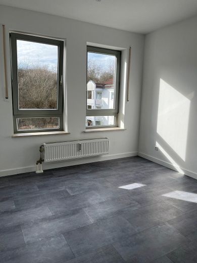 Vom Flur aus sind alle Zimmer einzeln begehbar. Das Wohnzimmer hat einen Balkon, der nach Südwesten ausgerichtet ist und Blick auf den Innenhof mit viel Grün bietet. Schlafzimmer und Küche sind ebenfalls nach Südwesten ausgerichtet. Das innenliegende Bad ist gefliest und verfügt über eine Badewanne, ein WC und einen Waschmaschinenanschluss.