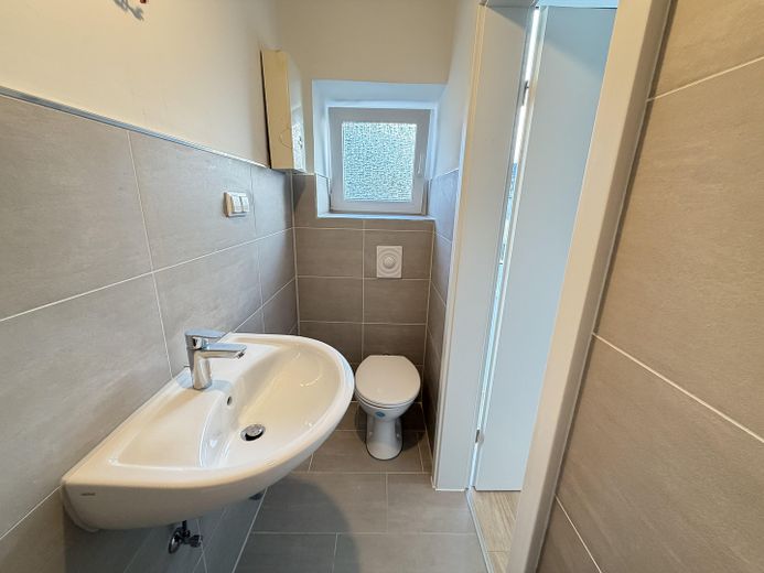 - Modern gefliestes Tageslichtbad mit Dusche