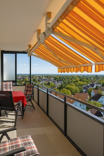 Die Wohnung besticht durch ihre helle und offene Gestaltung mit einem großen Wohn- und Essbereich, einem geräumigen Schlafzimmer, modernem Bad und praktischem Flur Der Aufzug bringt Sie direkt und bequem in die Etage Der großzügige Balkon bietet einen beeindruckenden Blick auf die Skyline von Frankfurt und lädt zum Entspannen ein