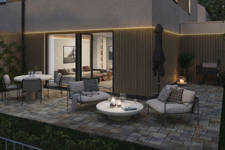 Eingebettet in eine naturnahe Umgebung und dennoch hervorragend angebunden, bietet das Projekt eine Wohnqualität, die Komfort und Nähe zur Natur gleichermaßen erfüllt. Die nachhaltige Holzbauweise überzeugt durch Energieeffizienz, ein angenehmes Raumklima und hohe Ausführungsqualität. Private Gärten, abgestimmte Außenanlagen und der Erhalt des alten Baumbestands verleihen dem Ensemble eine besondere Atmosphäre.