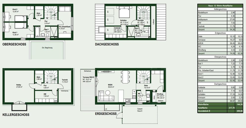 • Untergeschoss/Keller: Hobby- und Abstellflächen sowie Haustechnik; nutzbar für Stauraum, Fitness oder Werkbank.