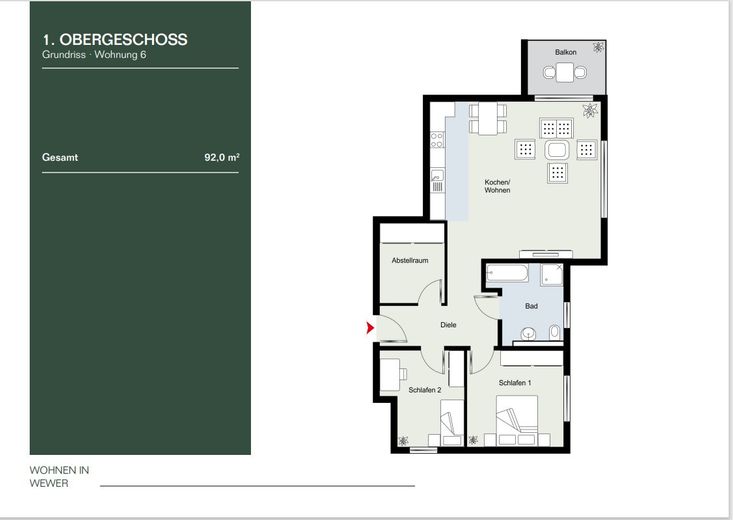 Die Wohnung verfügt über insgesamt drei Zimmer, die sich auf großzügige 92 m² verteilen - hier haben Sie jede Menge Platz und können Ihrer Kreativität freien Lauf lassen.